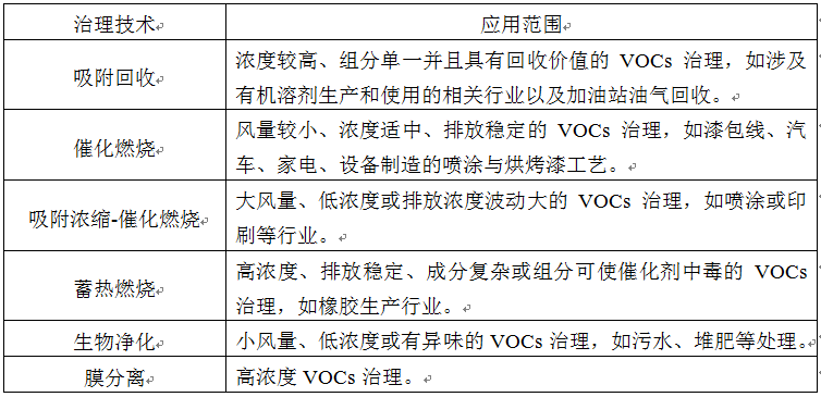 表5-1 常用VOCs治理技術(shù)及應(yīng)用范圍