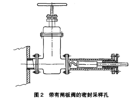 2.對(duì)正壓下輸送高溫或有毒氣體的煙道,應(yīng)采用帶有閘板閥的密封采樣孔(圖2)。